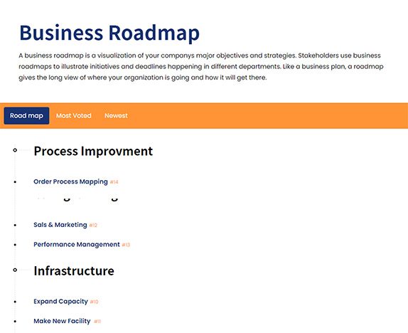 We have used WP Roadmap plugin which will allow you to create product feedback boards from your users in one place. Show your products, events, in-process developments, concerts, future happenings, achievements and awards, milestones, upcoming product launches and more based on date of stories on this beautiful timeline on your website. You can easily change the content and order based on your own criteria on your wesite.